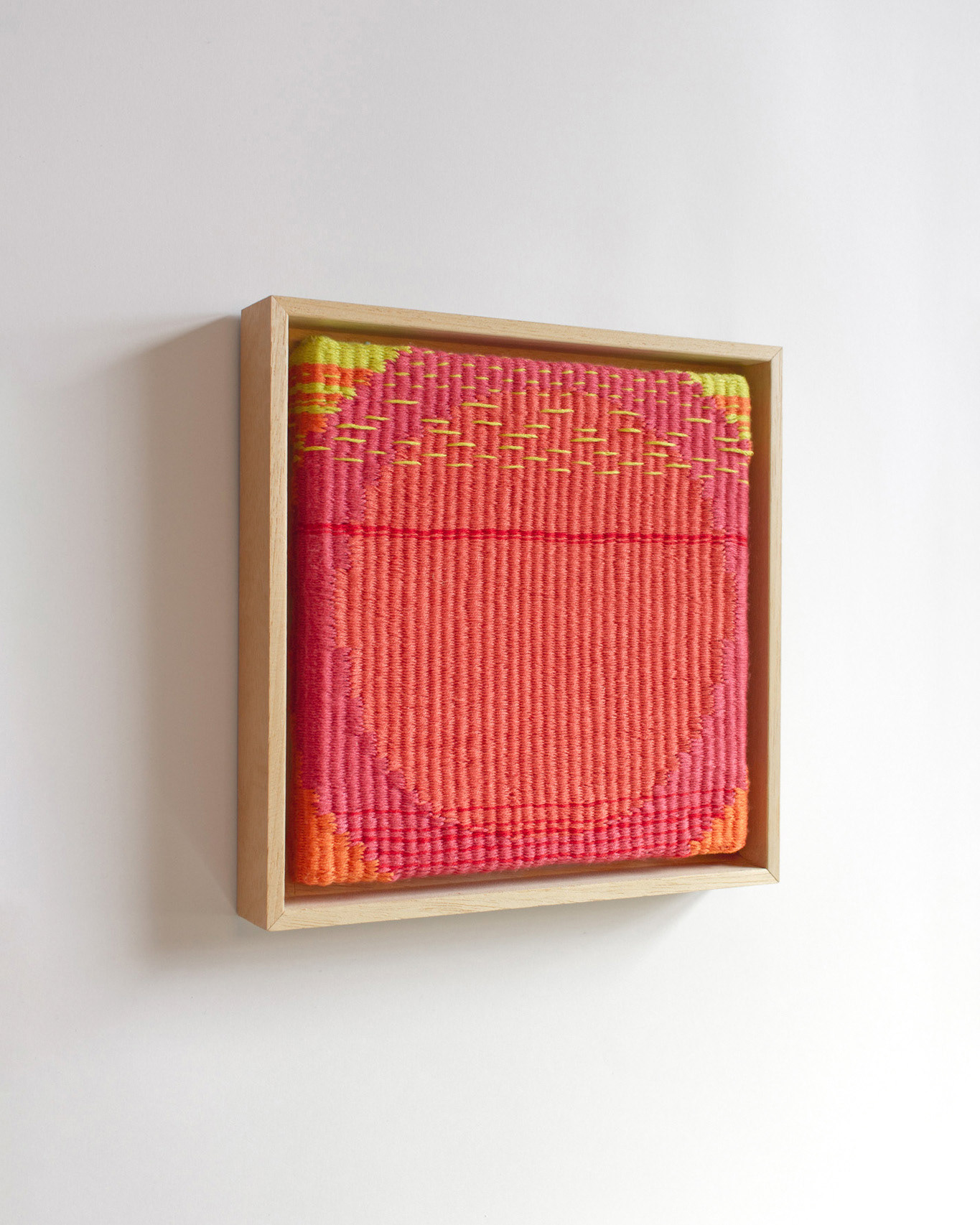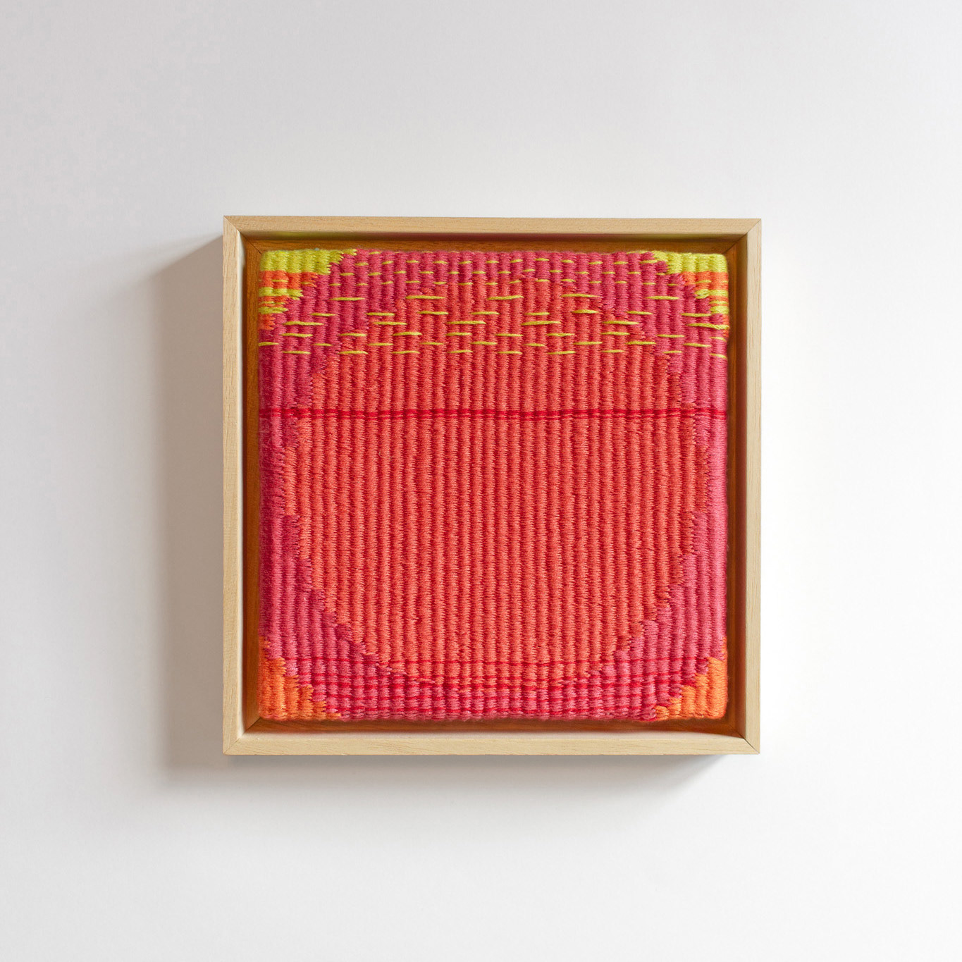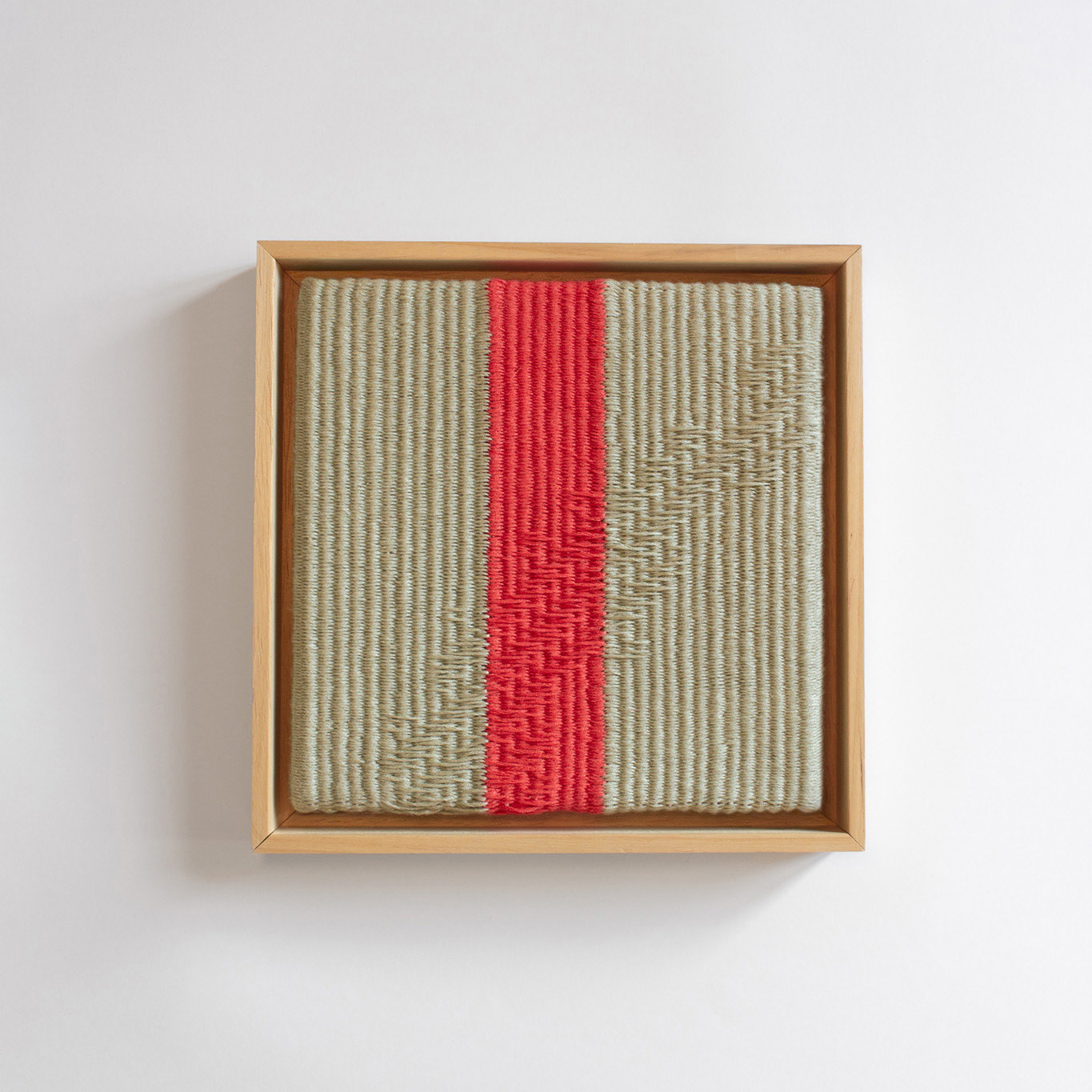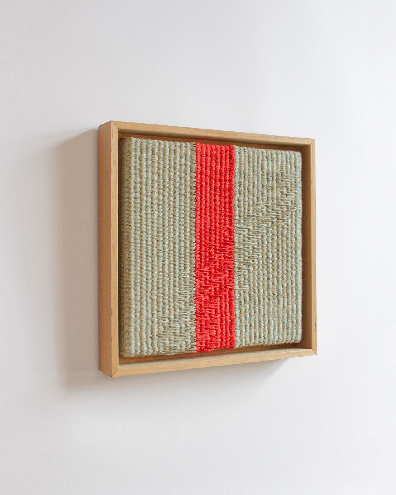 This series explores weaving as a way of working with memory. Each piece is based on a fragment of a personal recollection, gradually reduced to color and simple shapes. The slow, meditative rhythm of weaving becomes part of the work itself — plain weave structures are repeated over and over, creating a quiet surface with subtle shifts. New structures emerge within the surface, like quiet distortions that ask for a closer look.